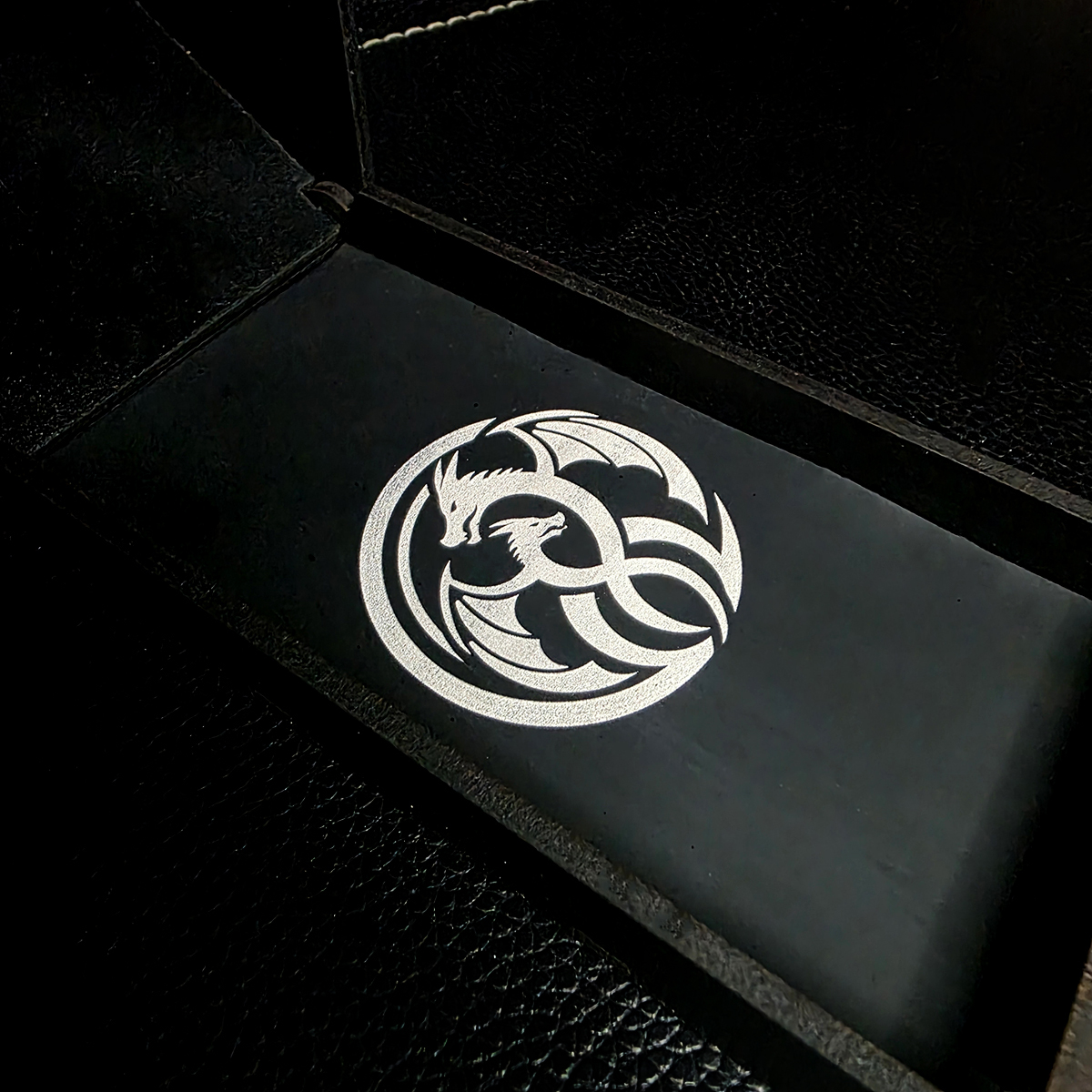 Command the table with Noir. This all-black dice tower combines sleek design with premium craftsmanship. The matte black construction creates a striking silhouette, while the leather insert features the Wyrm & Whelp logo engraved in crisp white. Every roll becomes a moment of drama. Customize your leather insert to make it uniquely yours. Where shadow meets sophistication, Noir transforms every game into something unforgettable.